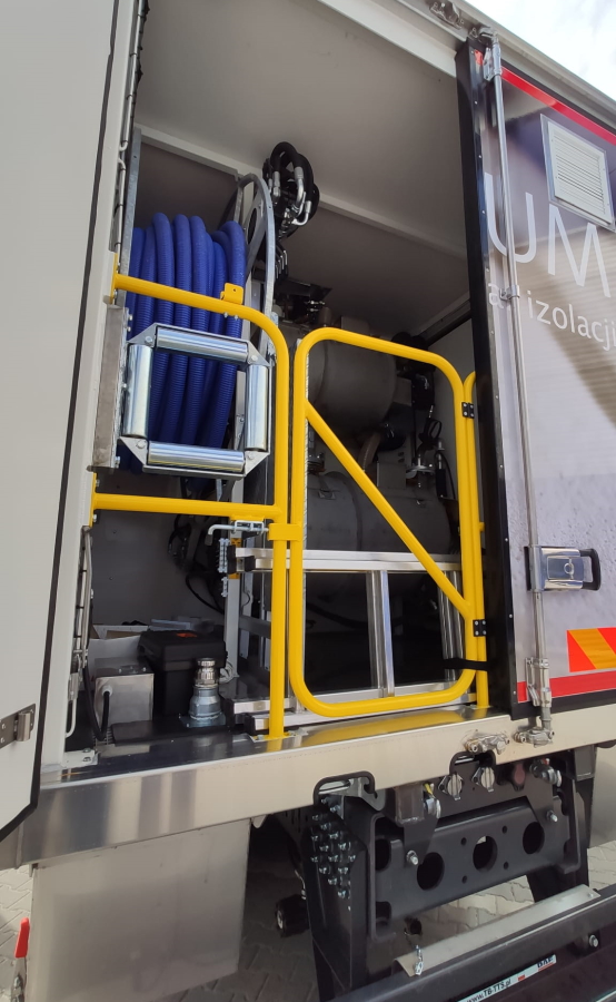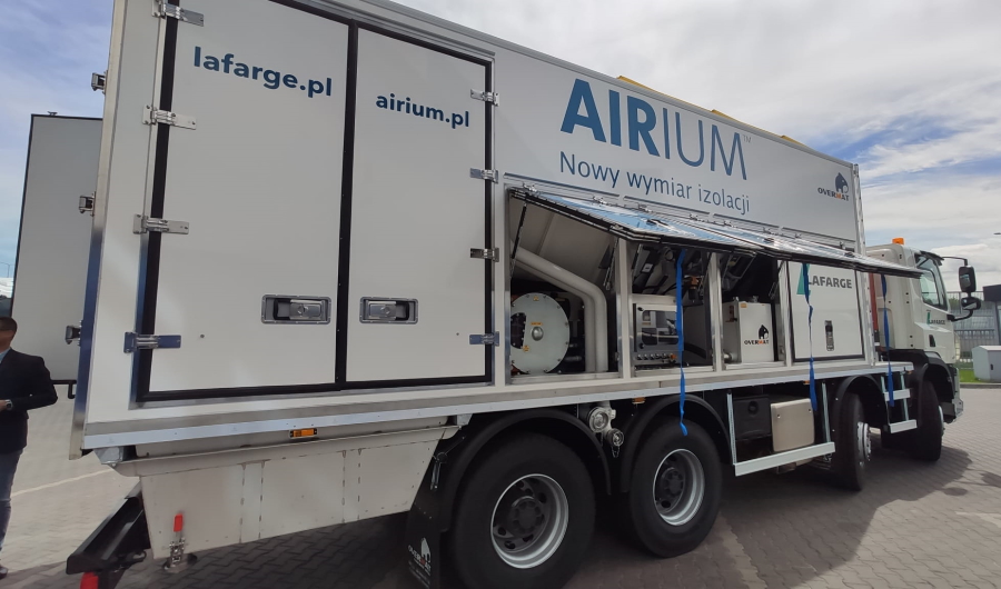 Zabudowa jest mobilną wytwórnią Airium – całkowicie mineralnego materiału izolacyjnego na bazie cementu i wodnej piany. Airium to ekologiczna alternatywa dla wełny mineralnej, pianobetonu i styropianu, wylewana bezpośrednio na placu budowy (warstwy podposadzkowe, elementy ścienne, dach). Obszar zastosowania to przede wszystkim budownictwo mieszkaniowe: wielorodzinne i indywidualne.