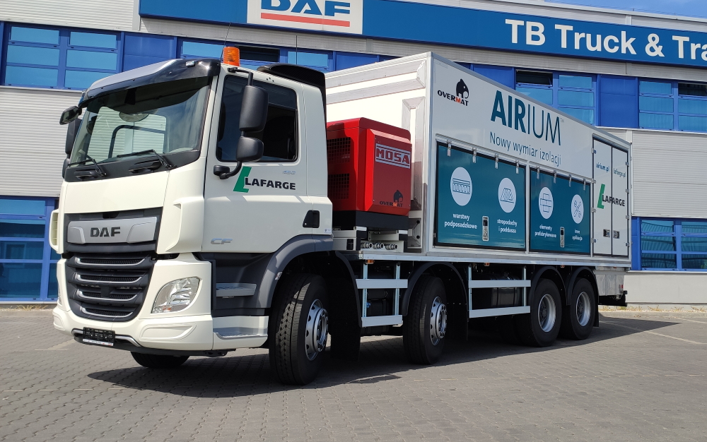 To czwarty na świecie i pierwszy z trzech takich zamówionych pojazdów DAF w Polsce z tego typu zabudową. Jest to autorski projekt firmy Lafarge, za techniczną stronę realizacji projektu odpowiadała włoska firma Overmat specjalizująca się w budowlanych zabudowach specjalnego typu.
