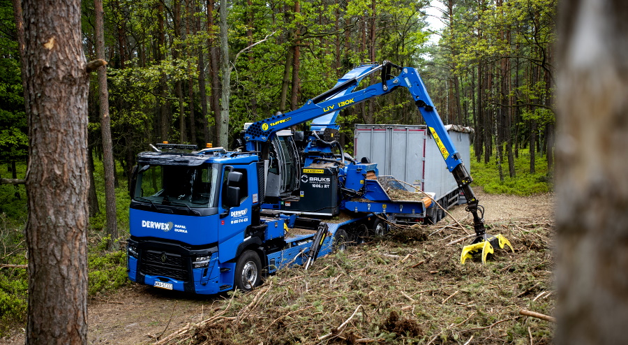 Krzysztof Kosk, area sales manager Renault Trucks Polska: “Nasze pojazdy do transportu drewna wyróżniają się przede wszystkim dużym prześwitem, kątem natarcia i dobrymi parametrami jezdnymi, a wyposażone w stalowy zderzak są pancerne i wytrzymałe. W konfiguracji ze skrzynią Xtended, która ma biegi pełzające i biegi drogowe, dobrze radzą sobie w trudnym terenie. Proponujemy klientom 520-konny silnik, który jest w zupełności wystarczający do poruszania się takim pojazdem, a w trudnym terenie zapewni odpowiednio wysoki moment obrotowy. Mimo że osie są na zwolnicach, dzięki tej skrzyni pojazd zużywa mało paliwa, gdy jest używany do transportu drogowego, a w terenie jest silny i dzielny. To najlepszy stosunek jakości do ceny i ekonomiki paliwowej”.