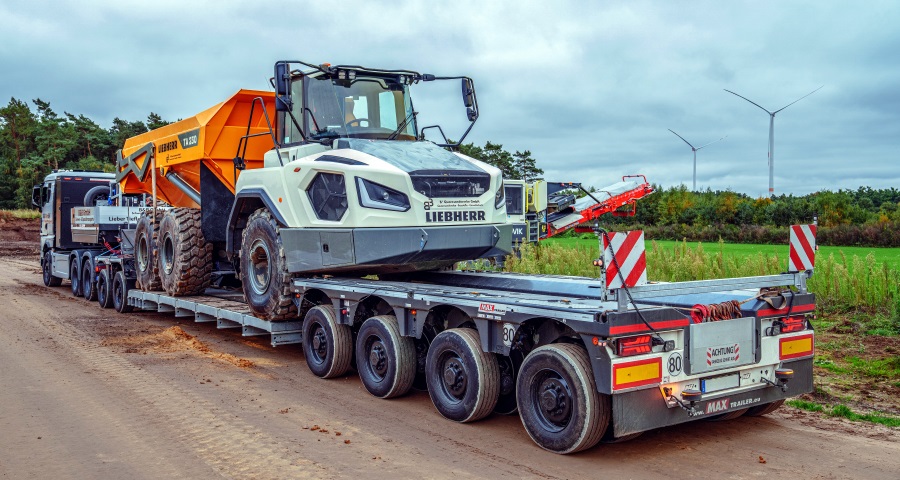 Jednym z zadań zrealizowanych przez firmę B7B i kierującego zestawem Reinera Elferinga, w którym naczepa MAX710 udowodniła swoje atuty, był transport 56-tonowej kruszarki. Trasa nie należała do najłatwiejszych: jej fragmentem był typowy teren budowy z wąskimi i nierównymi drogami, ostrymi zakrętami i drzewami ograniczającymi możliwość manewrowania. Okazało się, że dla naczepy MAX710 nie był to jakikolwiek problem: 19,5-calowe osie wahadłowe pokazały, co potrafią dzięki wysokiemu skokowi zawieszenia i dużemu kątowi skrętu. „Po prostu pojazd pozostaje stabilny, cokolwiek by się nie działo. MAX710 podąża za moim ciągnikiem siodłowym, jakby ciągnięty za sznurek” – tak komentował ekspert od transportu ciężkiego, precyzyjnie prowadząc zestaw pojazdów do celu.
